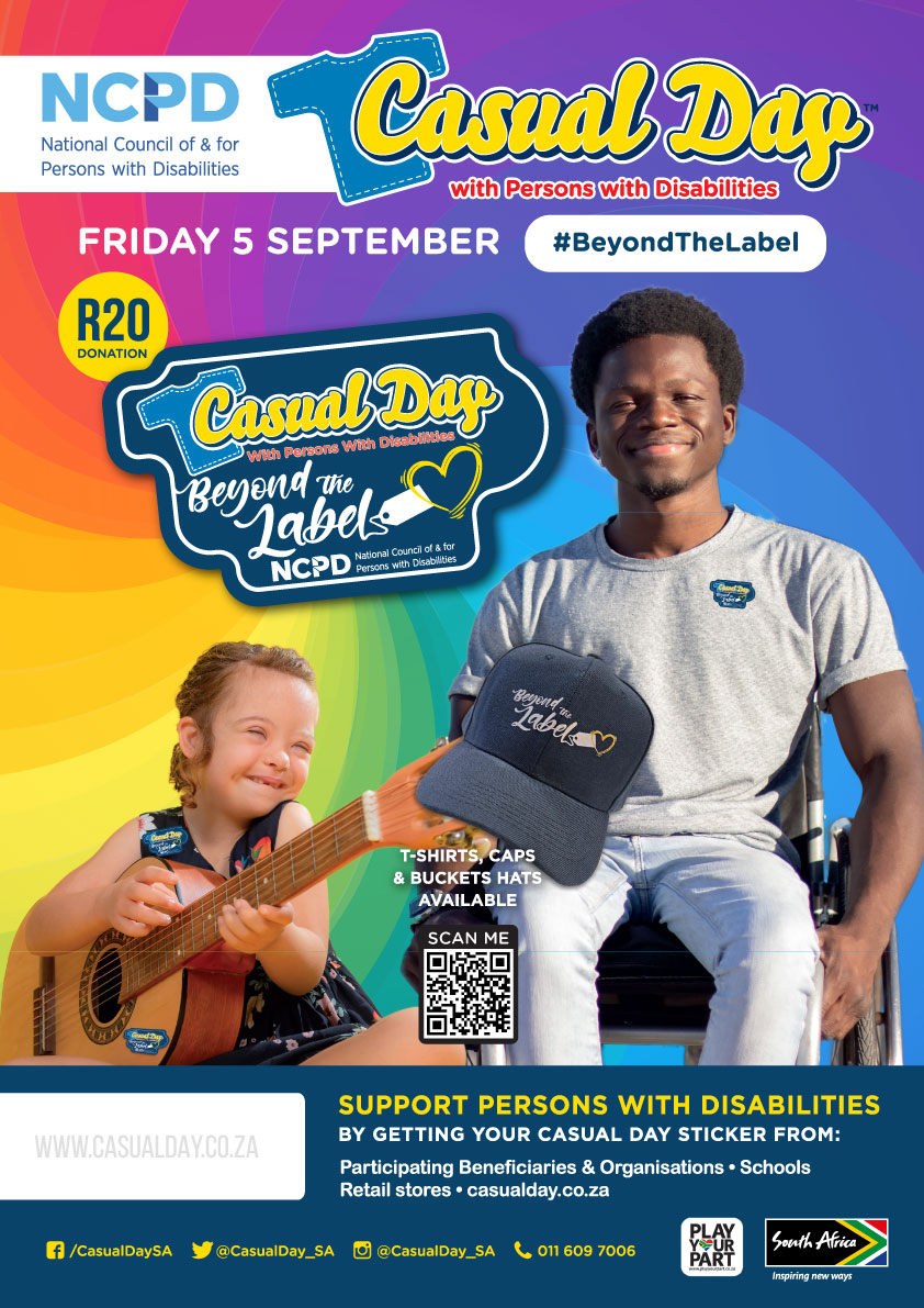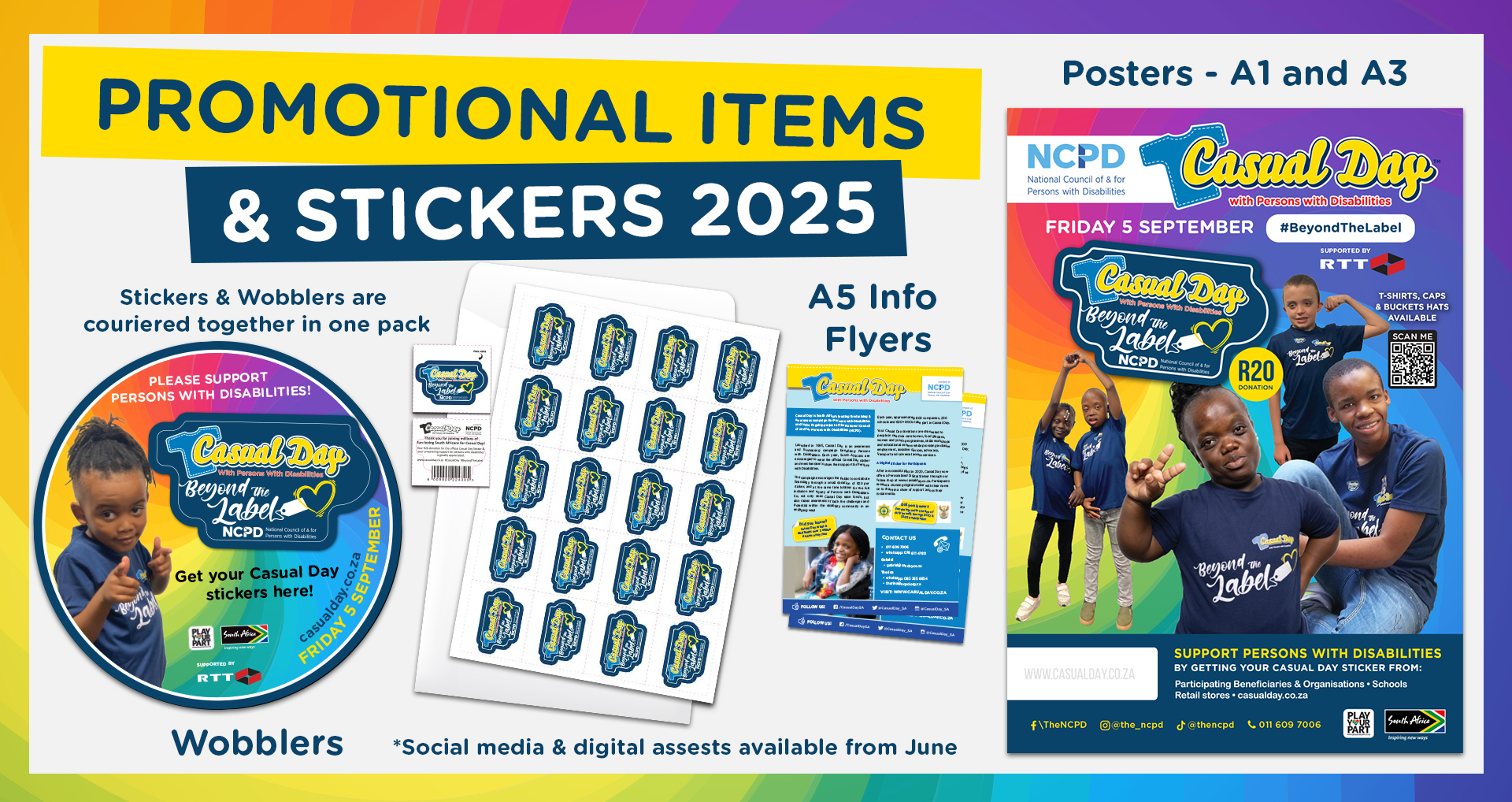 The most powerful thing you can wear this Casual Day is your Casual Day Sticker—because wearing it isn’t just about style, it’s about impact. Every sticker and supporter item you purchase directly benefits disability organisations across South Africa, making a real difference.